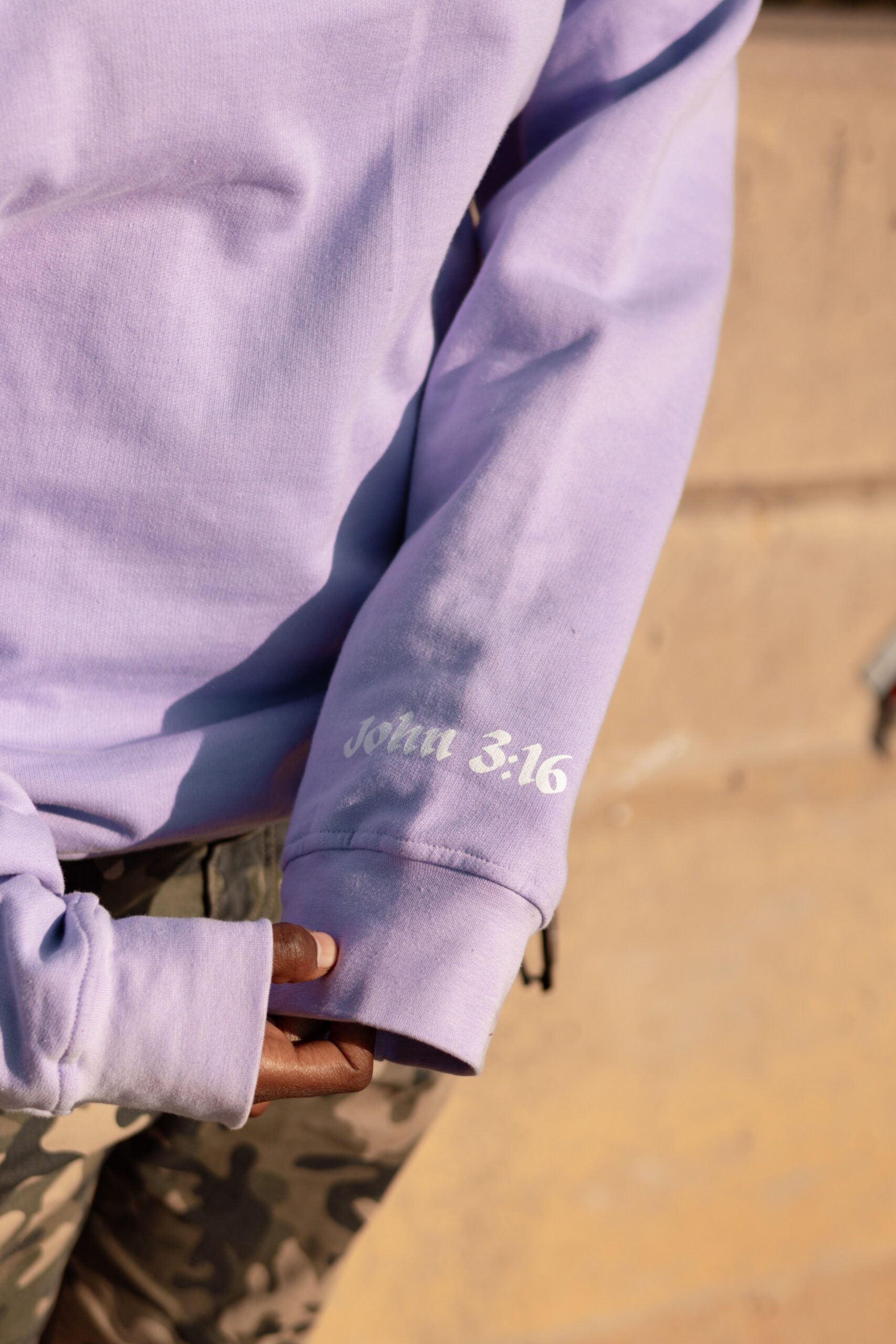 Lilac with White Print on Front and Left Sleeve